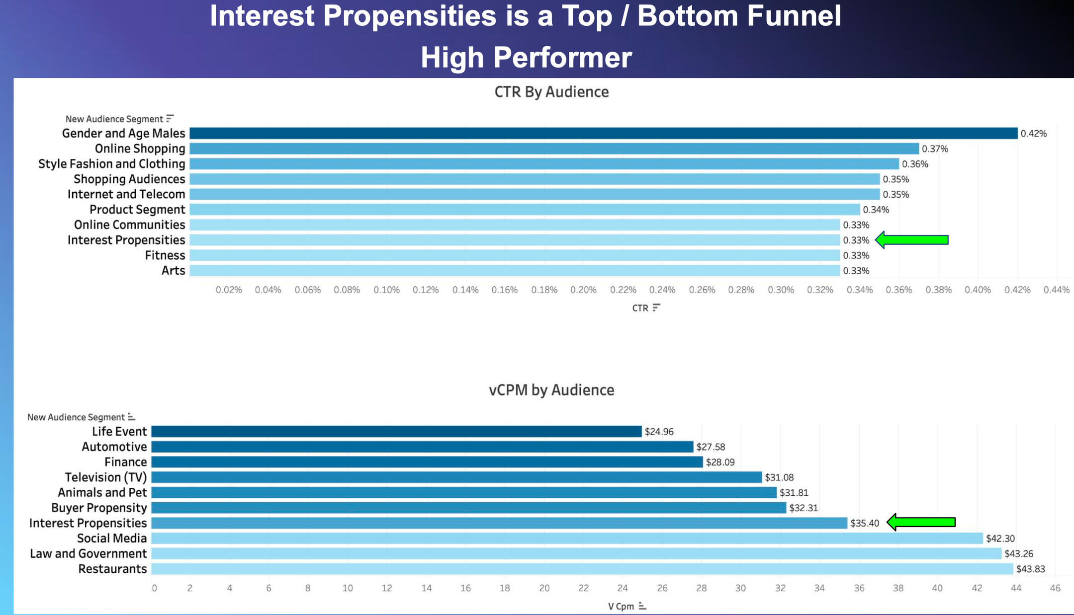 Best audience segments: "People & Society" and "Interest Propensities" for low CPA and high conversions.