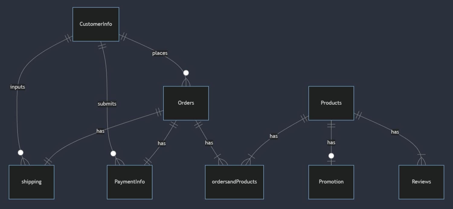 Orders and Products (Junction Table): Resolves many-to-many relationships between orders and products.